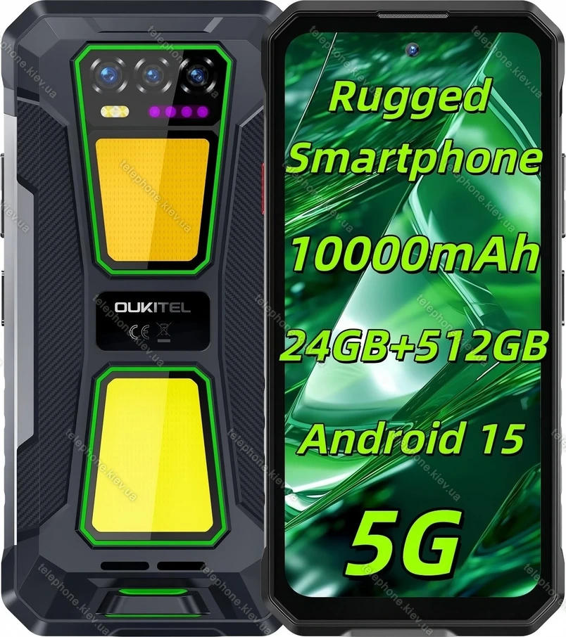 Oukitel WP58 Pro 5G 512GB Black/Green — купить по лучшей цене в Киеве с рассрочкой 0% на 12 месяцев без банка, комиссий и скрытых платежей, а также с бесплатной доставкой по всей Украине