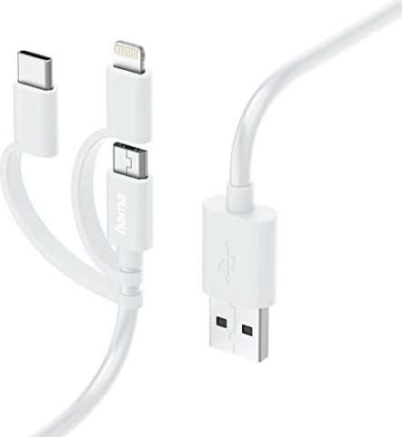 Hama 3in1 Multi-charging cable USB-A - micro USB USB-C and Lightning 1m white купить недорого в Киеве: оптовая цена, бесплатная доставка по Украине