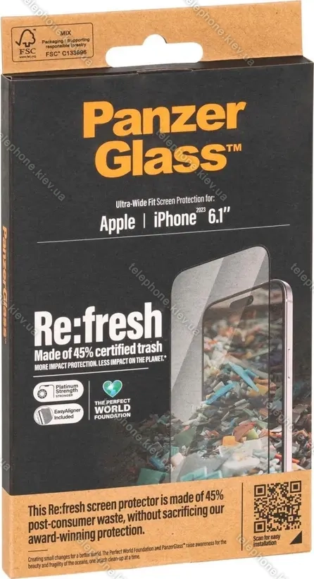 PanzerGlass Re:Fresh ultra wide Fit with EasyAligner for Apple iPhone 15 купить недорого в Киеве: оптовая цена, бесплатная доставка по Украине