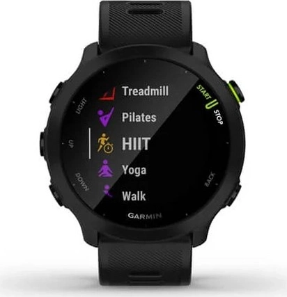 - время, секундомер, обратный отсчет, шагомер, плавательные движения, скорость, расстояние, счетчик кругов, мониторинг сна, мониторинг цикла, частота сердечных сокращений, кислород в крови, расход калорий