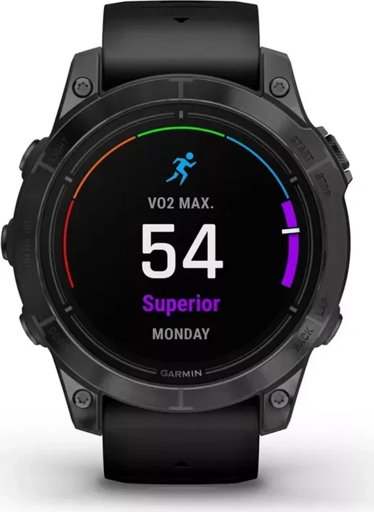 - водонепроницаемость (до 100 м. водного столба), MIL-STD-810 сертификат, сменный браслет, совместимость с датчиком частоты вращения педалей, фонарик