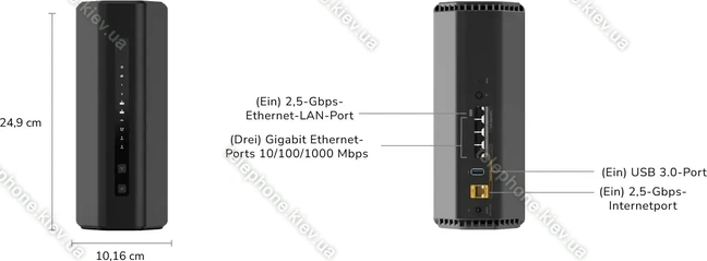 - 3x RJ-45 (10/100/1000Base-T), 1x RJ-45 (2.5GBase-T)