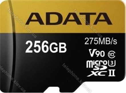 Карта памяти ADATA Premier ONE R275/W155 microSDXC 256GB Kit, UHS-II U3, Class 10 (AUSDX256GUII3CL10-CA1) в Киеве: купить недорого, лизинг, кредит, рассрочка, Украина