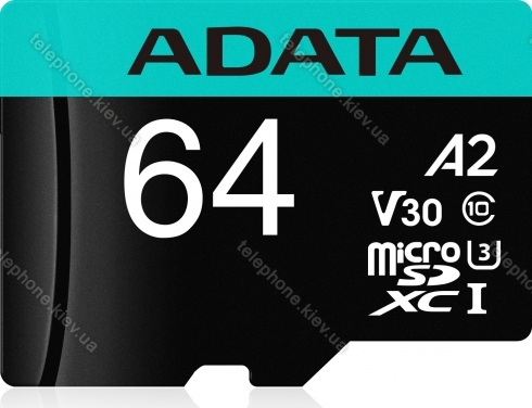 Карта памяти ADATA Premier Pro R100/W80 microSDXC 64GB Kit, UHS-I U3, A2, Class 10 (AUSDX64GUI3V30SA2-RA1) купить недорого в Украине: гарантия качества и оптовые цены