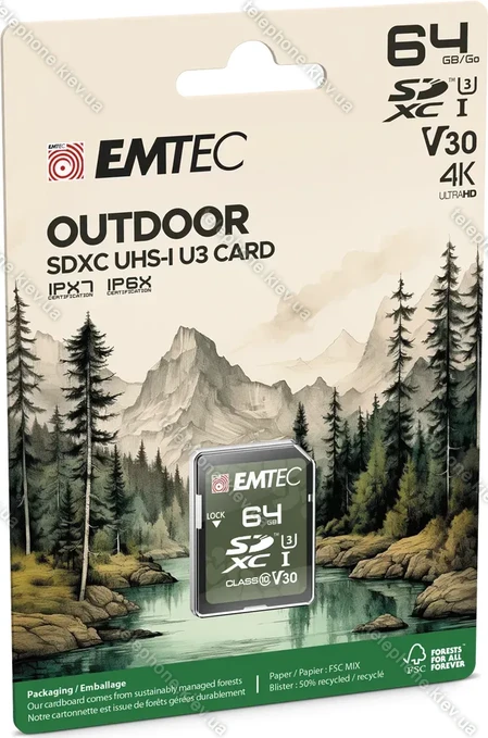 Карта памяти Emtec Outdoor R100/W50 SDXC 64GB, UHS-I U3, Class 10, Украина