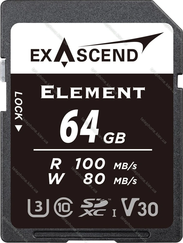 Карта памяти Exascend Element R100/W80 SDXC 64GB, UHS-I U3, Class 10 купить недорого в Украине: гарантия качества и оптовые цены
