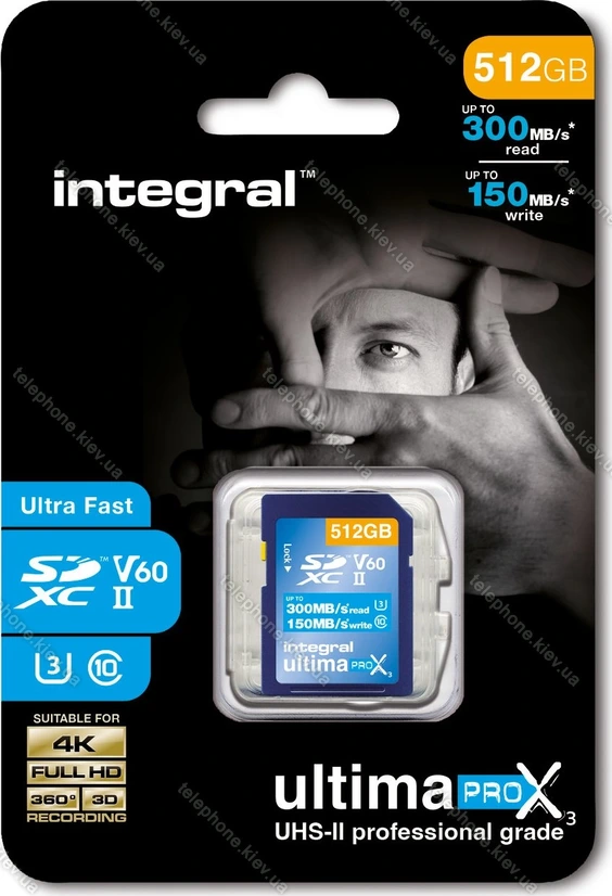 Карта памяти Integral UltimaPro X3 R300/W150 SDXC 512GB, UHS-II U3, Class 10, Украина |