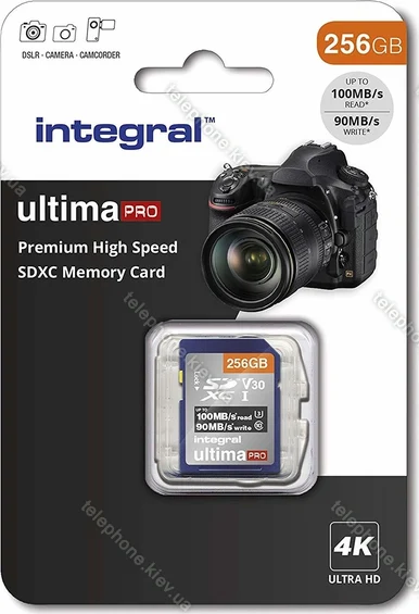 Карта памяти Integral ultima PRO R100/W90 SDXC 256GB, UHS-I U3, Class 10, Украина