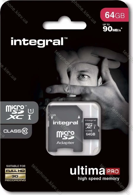 Карта памяти Integral ultima PRO R90 microSDXC 64GB Kit, UHS-I U1, Class 10, Украина |