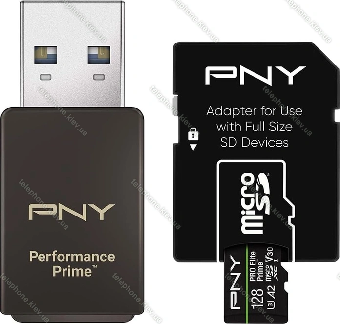Карта памяти PNY Pro Elite Prime R200/W150 microSDXC 128GB USB-Kit, UHS-I U3, A2, Class 10, Украина |