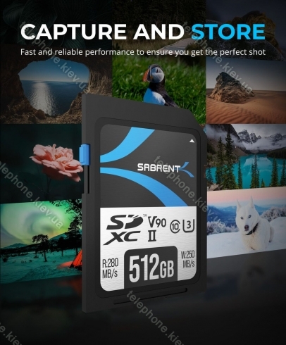 Карта памяти Sabrent Rocket V90 R280/W250 SDXC 512GB, UHS-II U3, Class 10, Украина |